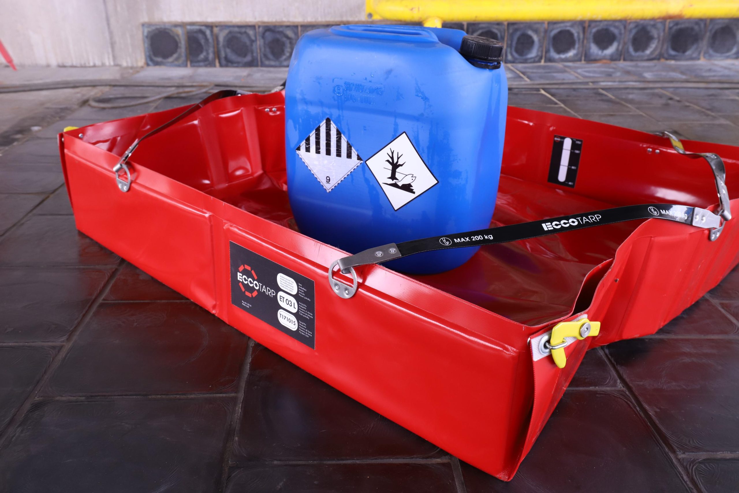 Kimya, petrokimya, metal işleme, üretim hatları, depo ve dolum alanlarında ani sızıntıları kontrol etmek için idealdir. Maksimum 200 kg taşıma kapasitesi, ağır varilleri de güvenle destekler.